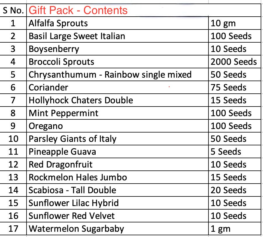 This Gift Pack Includes 17 Carefully Selected Seed Varieties: